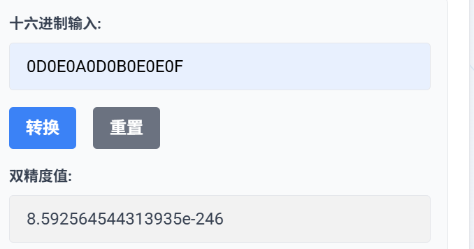 print(d) p.sendlineafter("input:\n", b'8.592564544313935e-246') p.sendlineafter("Make a choice:", b'1')