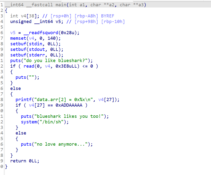 满足v4[27]为0xADDAAAAA时,就能getshell