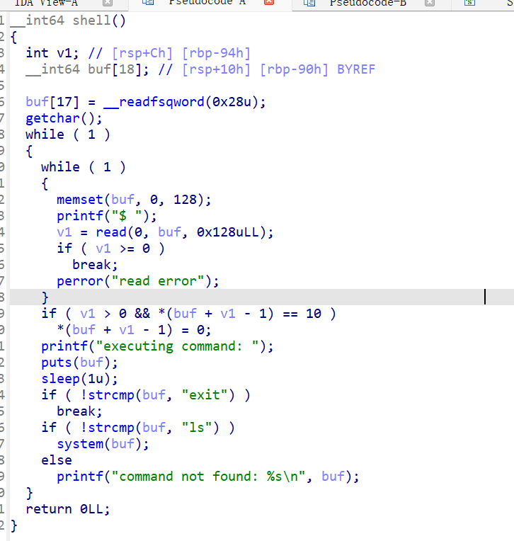 final自带的shell只能执行ls和exit,strcmp和system都会\x00截断所以不能这样绕过