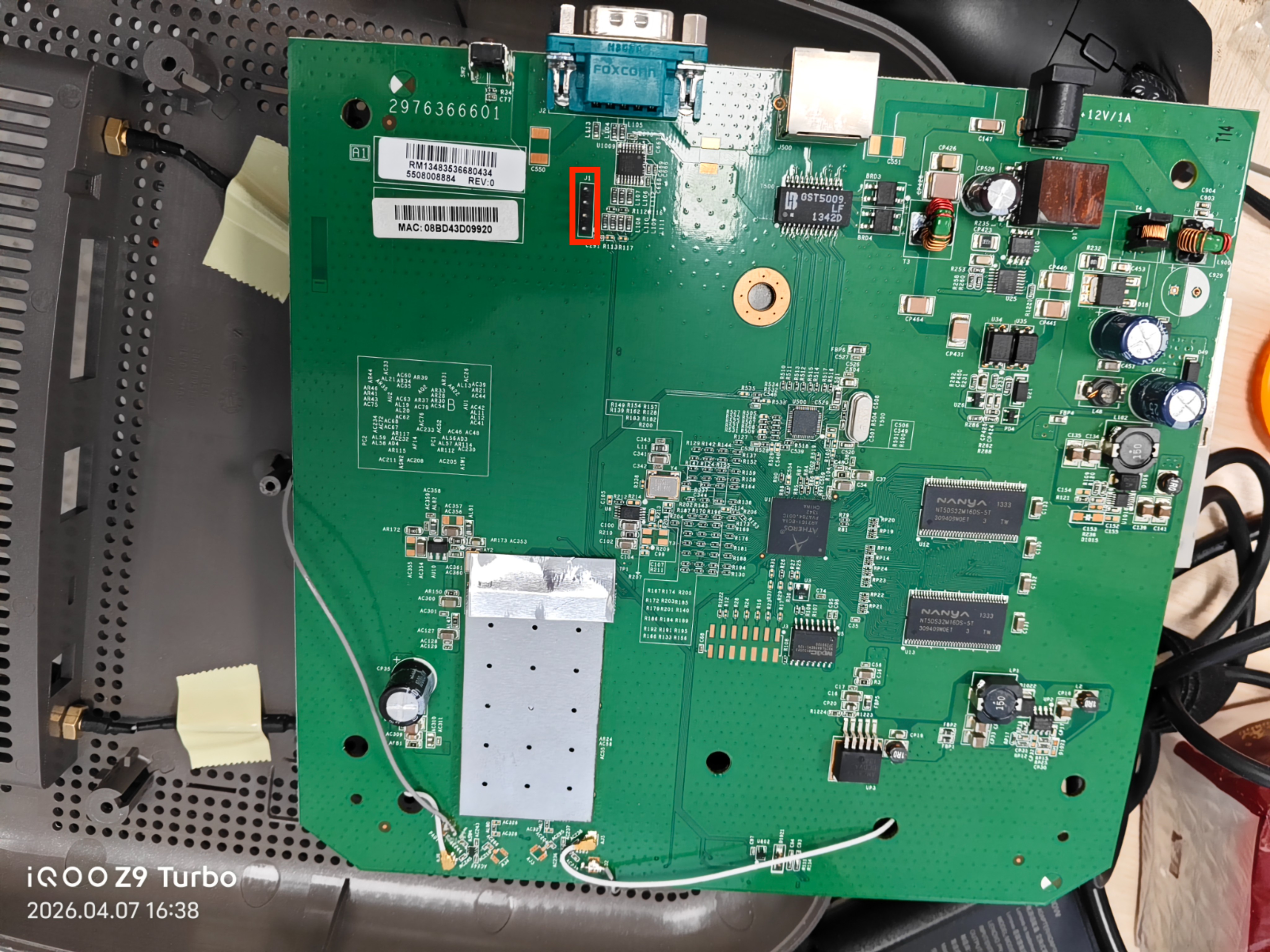 红圈圈出来的J1位置有4个并排的针脚,很可能是UART串口
