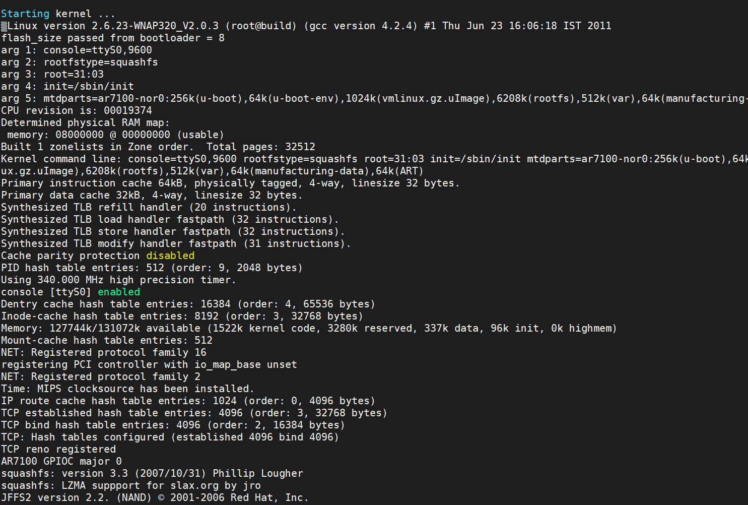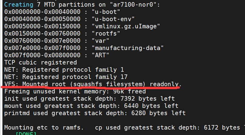 连接后按下reset键将路由器重启,查看回显: